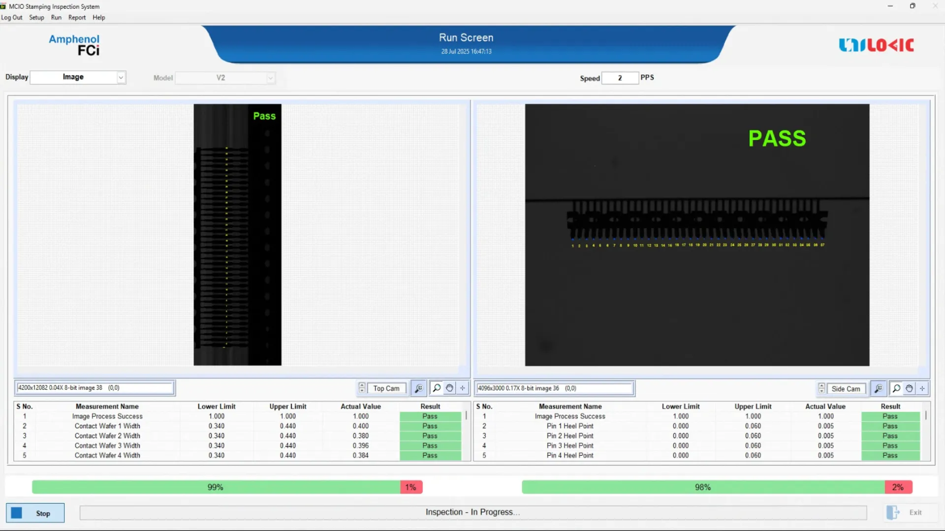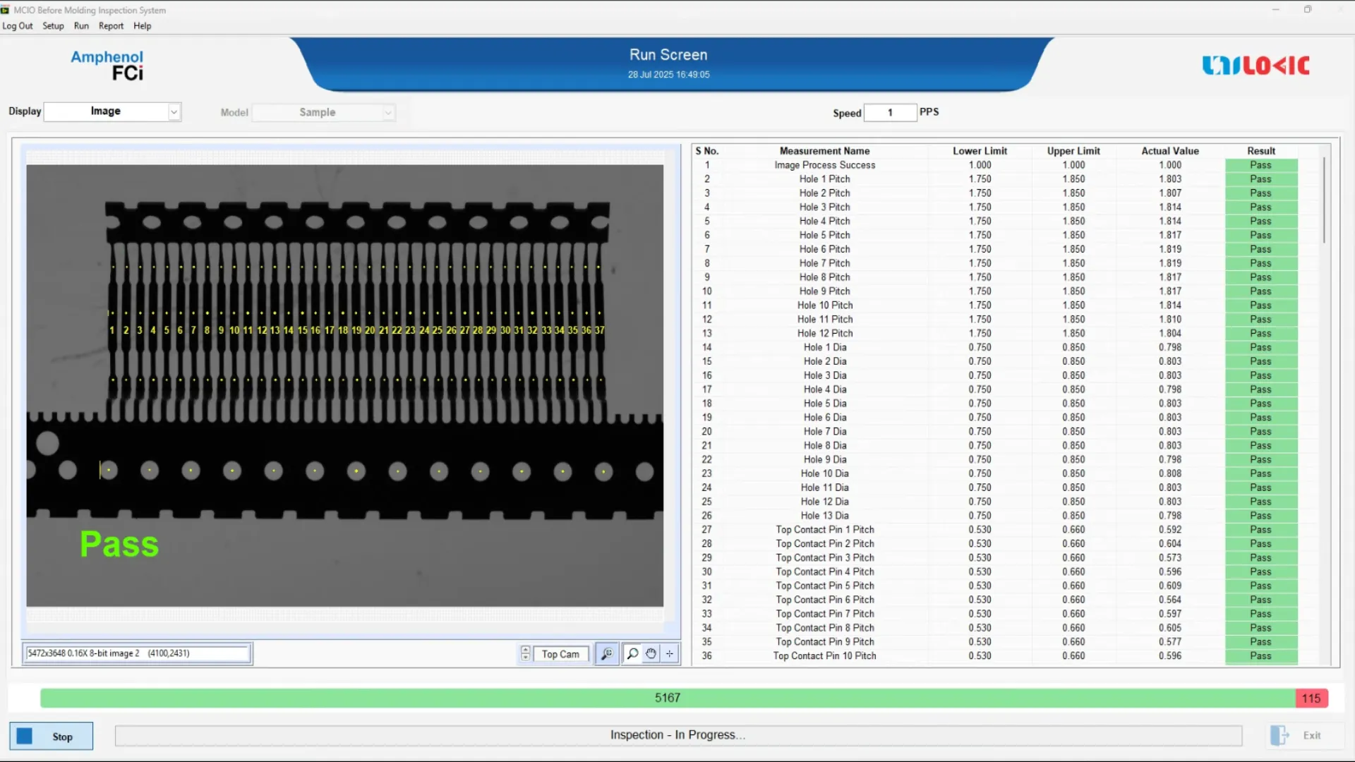 - Basic pitch and width validation using top-mounted 20 MP area scan camera (4 µm resolution)