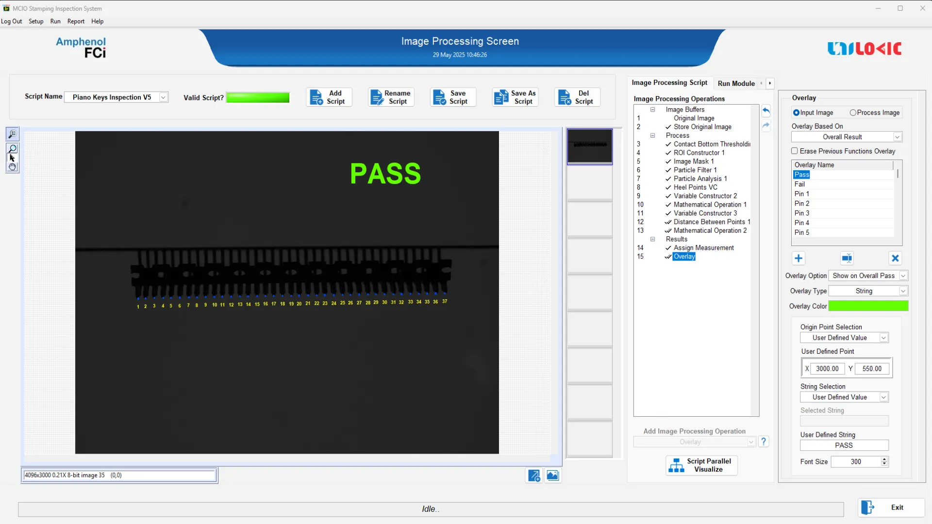 These imaging components are controlled by custom-developed machine vision software, which performs high-speed image acquisition and executes precise edge detection, feature extraction, and geometric validation in real time.