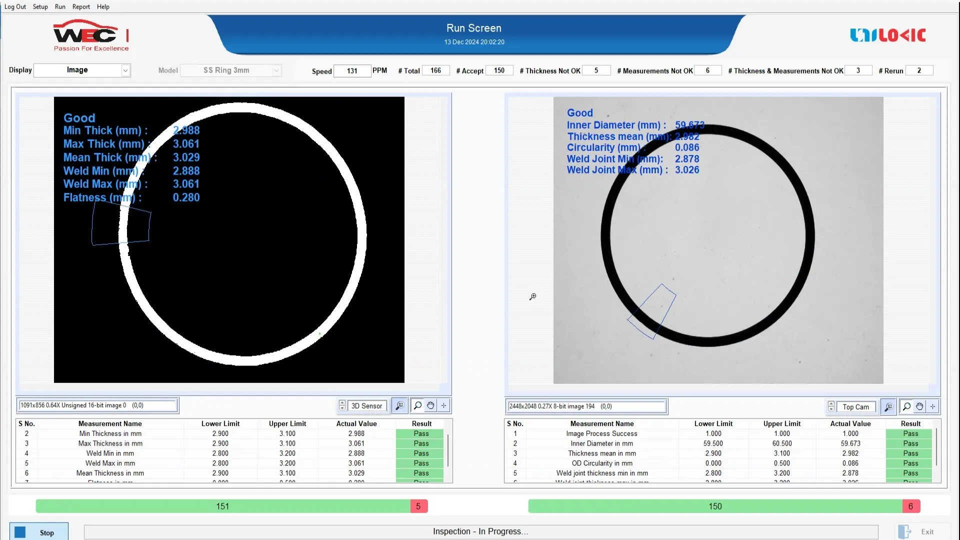 Unilogic developed a fully automated Ring Inspection System that uses a combination of 3D line profilers and high-resolution area scan camera to perform rapid inspection.