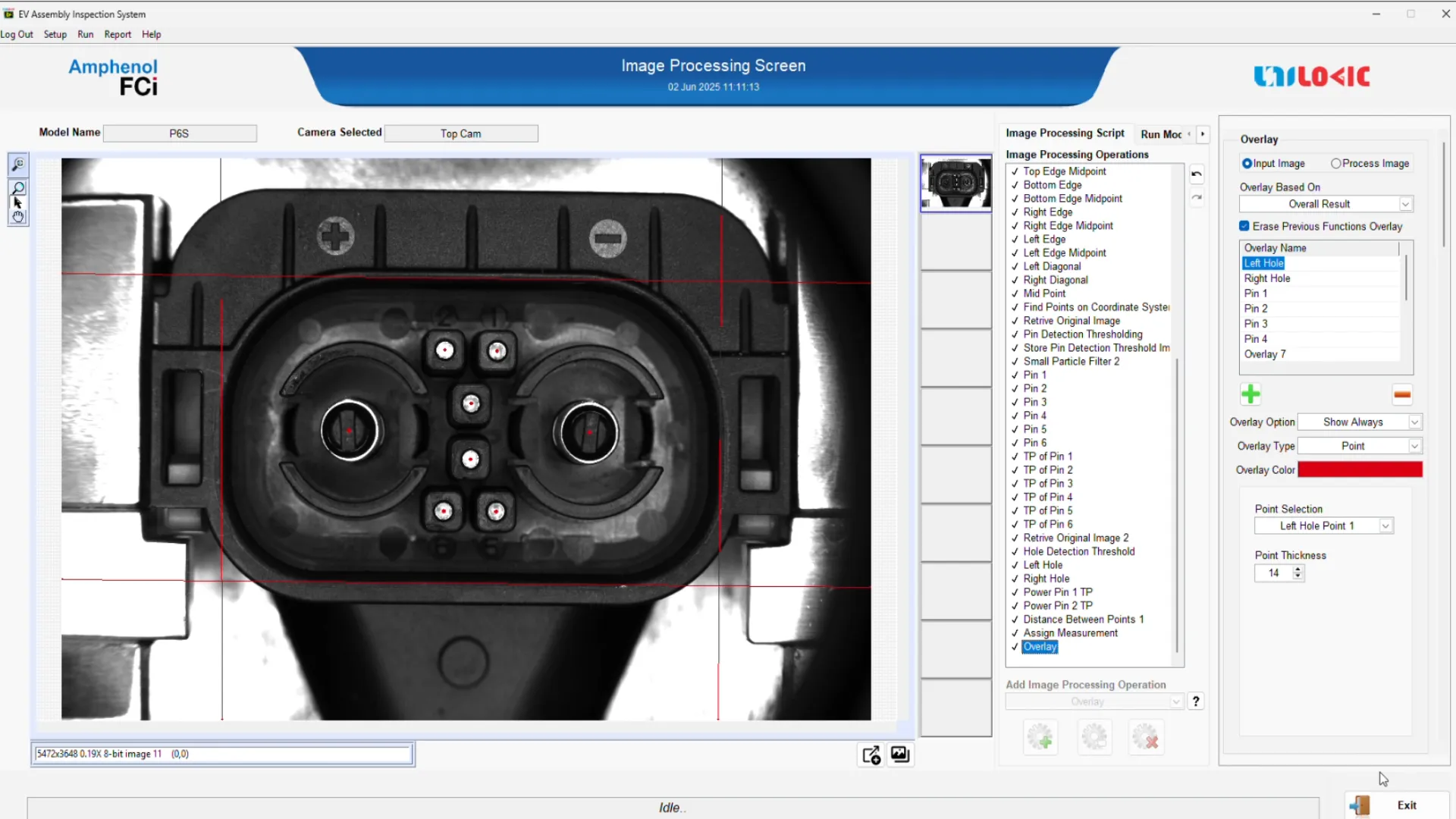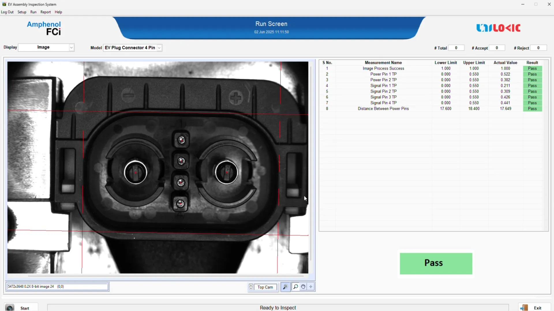 To address these challenges, a high-precision vision inspection system has been developed to ensure reliable and repeatable inspection of EV plugs. This system leverages custom-engineered machine vision software integrated with high-performance vision hardware to deliver consistent inspection results.
